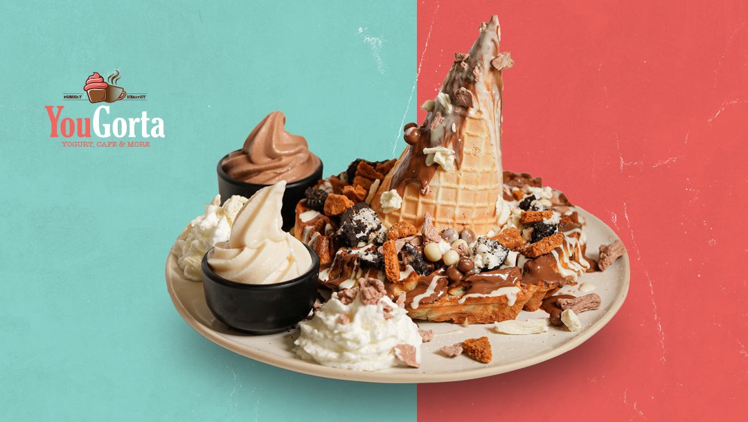 וופל קריוולו מפנק במיוחד, מוגש עם שני סוגי שוקולד – חלב ולבן, והרבה תוספות עשירות: מקופלת, אוראו, קליק ולוטוס. מעליו רוקט ביסקוויט גדול ממולא בקרם ושוקולד, לצד גלידת וניל, קינדר וקצפת נוספת בצד